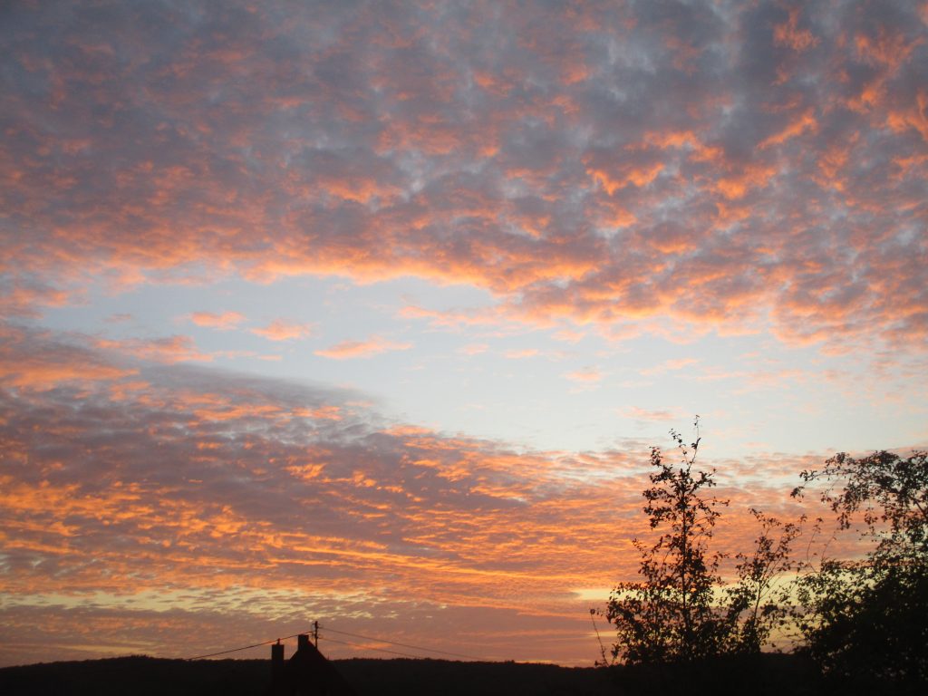 Morgen geraten wir schon auf die Vorderseite des Tiefs IRAWAN bei Irland und die Strömuzng dreht auf Süd. So ist es teils heiter, teils ziehen hohe und mittelhohe Wolkenfelder als Vorboten der Wetterumstellung durch. Die Temperaturen liegen zwsichen 13 und 15 Grad.