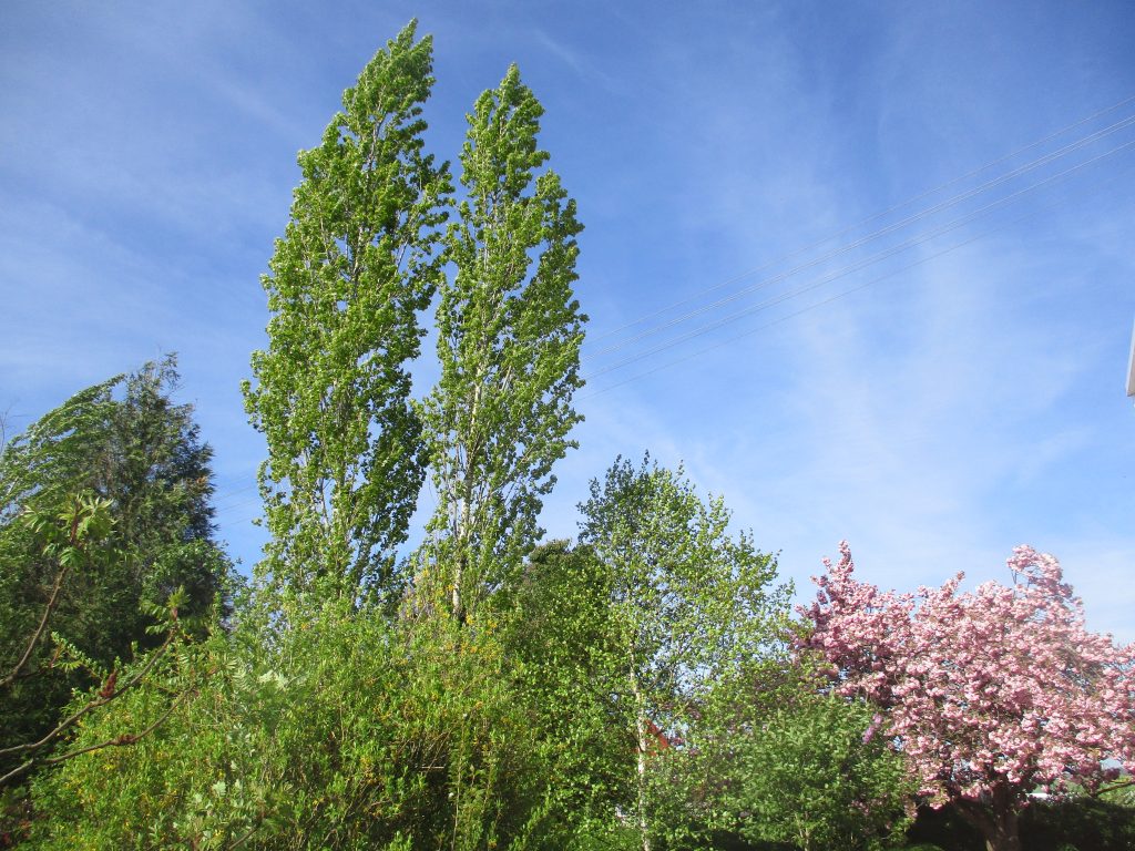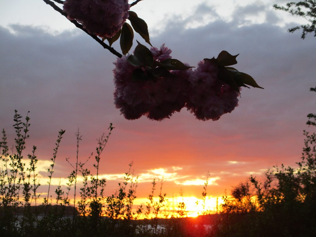 Binnen Wochenfrist sind viele Bäume grün geworden und auch die die Japanische Nelkenkirsche erfreut uns mit üppiger Blüte – so schön kann der Frühling im April sein.