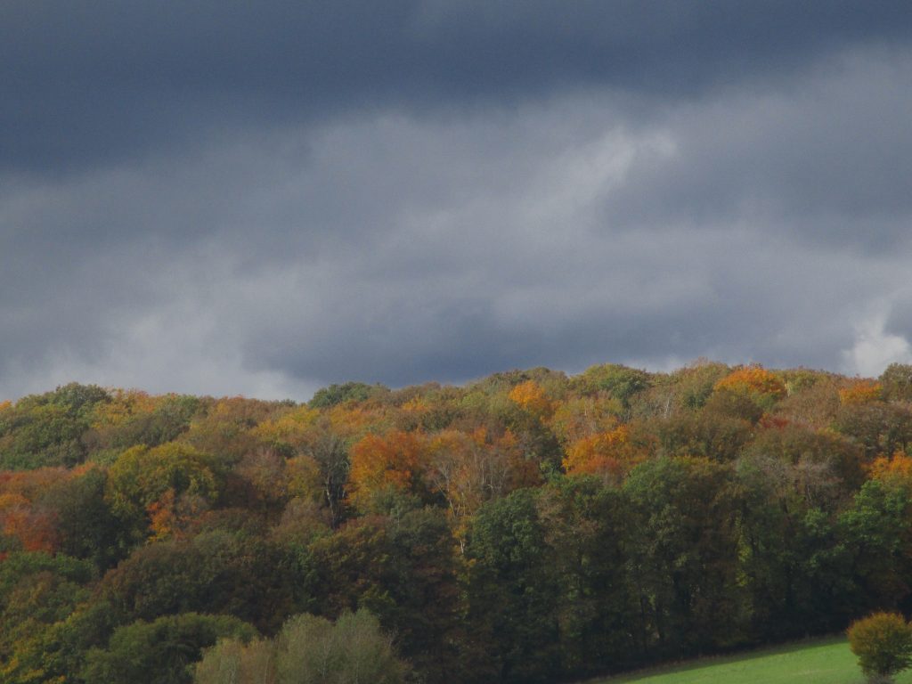 Die Natur zeigt nun von Tag zu Tag ein Stück mehr von ihren reichen Farbpalette – die Laubfärbung der Bäume in Kombination mit kurzen, sonnigen Phasen beschert uns ab und zu Momente des Goldenen Oktobers. Aufgrund der Lage des Hochs bei den Britischen Inseln mit Zufuhr feuchter Luft reicht es leider nicht für ungetrübten Sonnenschein wie im Sommer.